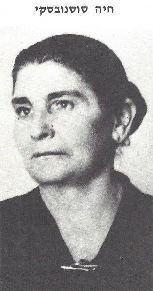חיה סוסנובסקיחיה סוסנובסקי, בתם של אברהם חיים וריינה פוקס נולדה ב-1893 בטבריה. כבת להורים אדוקים עבדה בצעירותה לפרנסת הוריה. בהיותה בת 14 עברה לעבוד בפתח-תקווה. שם שידך אותה קרובה ר' שלמה שטמפר לחיים סוסנובסקי מהמתנחלים הראשונים בכפר-סבא. בלטה בפעילותה האמיצה למען ישוב המקום ונשאה בעול קיומו של משקה. צאצאיהם: יואל, סימה, יהושע, חוה, חנה, מנחם, לאה ויוסף.