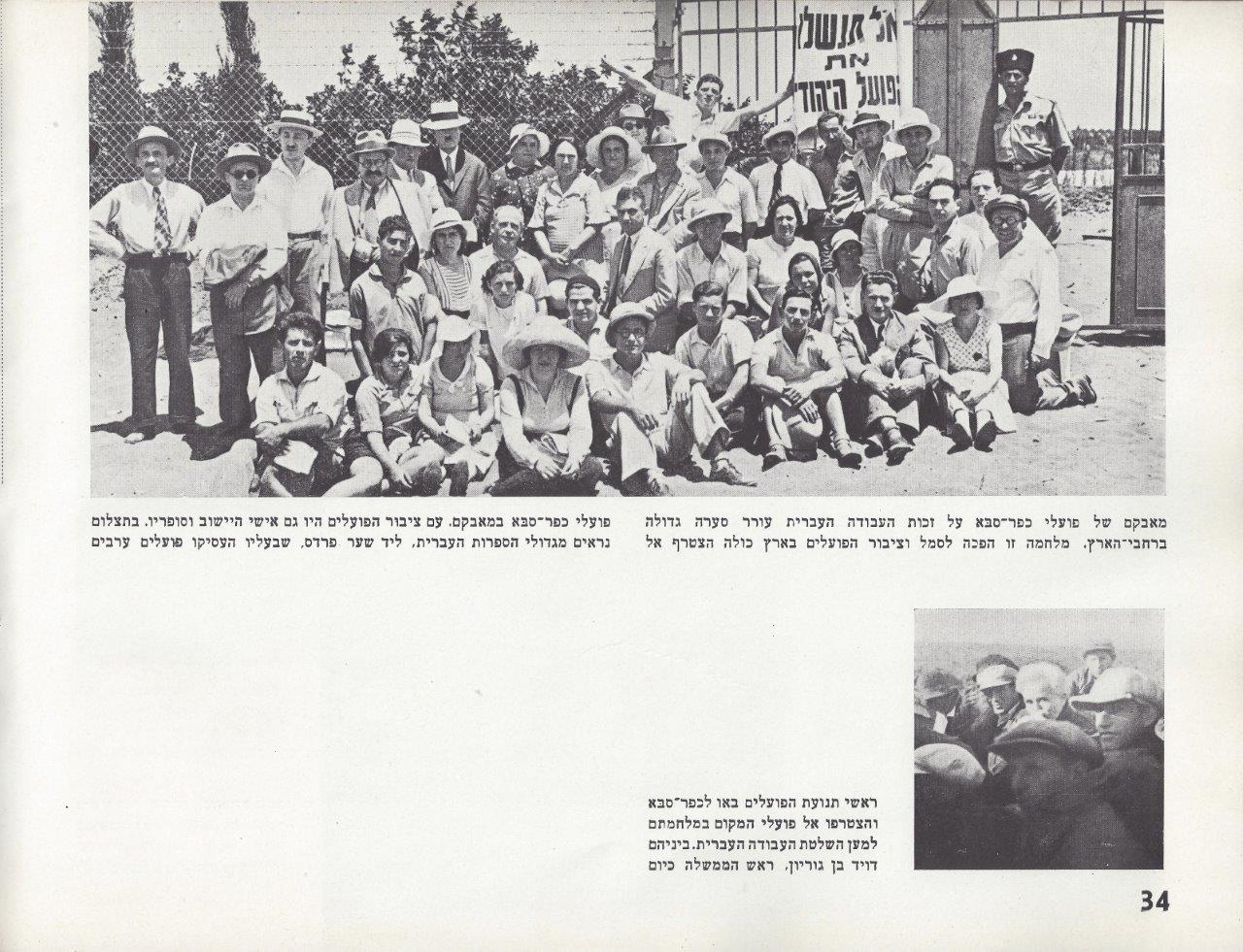 ראשי תנועת הפועלים באו לכפר-סבא והצטרפו אל פועלי המקום במלחמתם למען השלטת העבודה העברית. ביניהם דויד בן-גוריון, ראש הממשלה כיום.