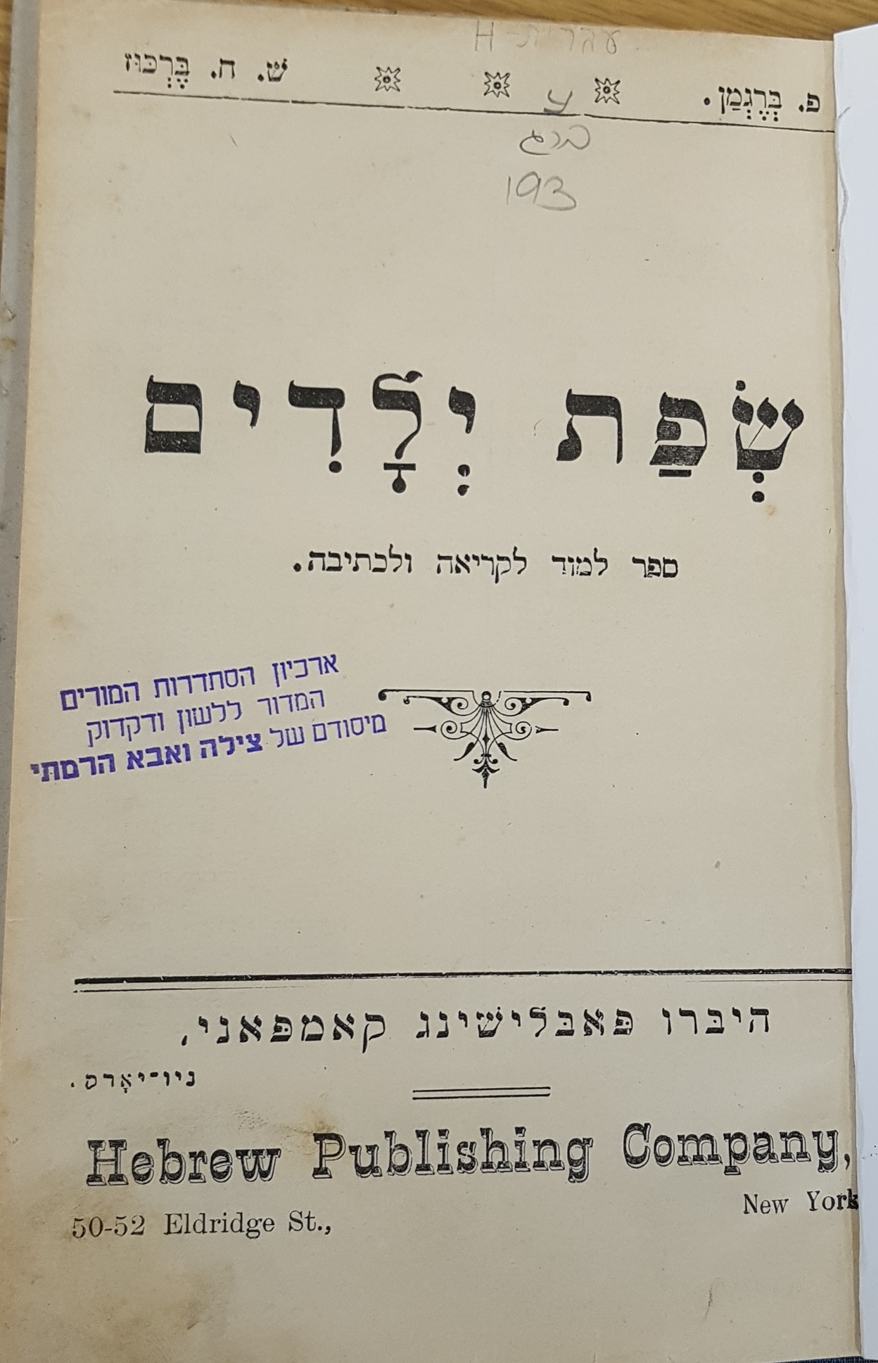 שפת ילדים: ספר למוד לקריאה ולכתיבה