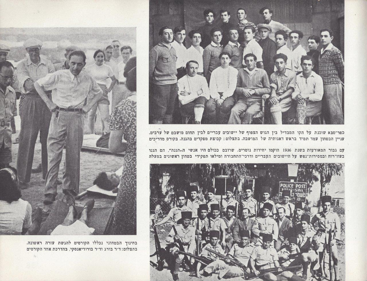 כפר-סבא שוכנת על הקו המבדיל בין הגוש הצפוף של יישובים עבריים לבין תחום מושבם של ערבים. עניין הבטחון עמד תמיד בראש דאגותיה של המושבה. בתצלום: קבוצת מפקדים בהגנה. בקורס מדריכים.