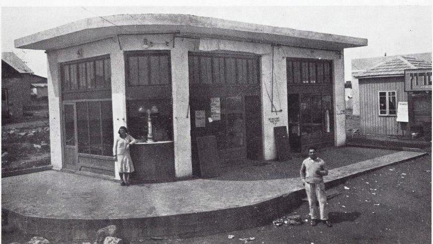 נבנה כבית כקפה בשנת 1932 על-ידי דוד לונברג ואשתו לאה. זמן קצר לאחר פתיחתו השכירו את המקום לצבי ואסתר פידלר. בתמונה רואים המנהלים החדשים צבי ואסתר פידלר.