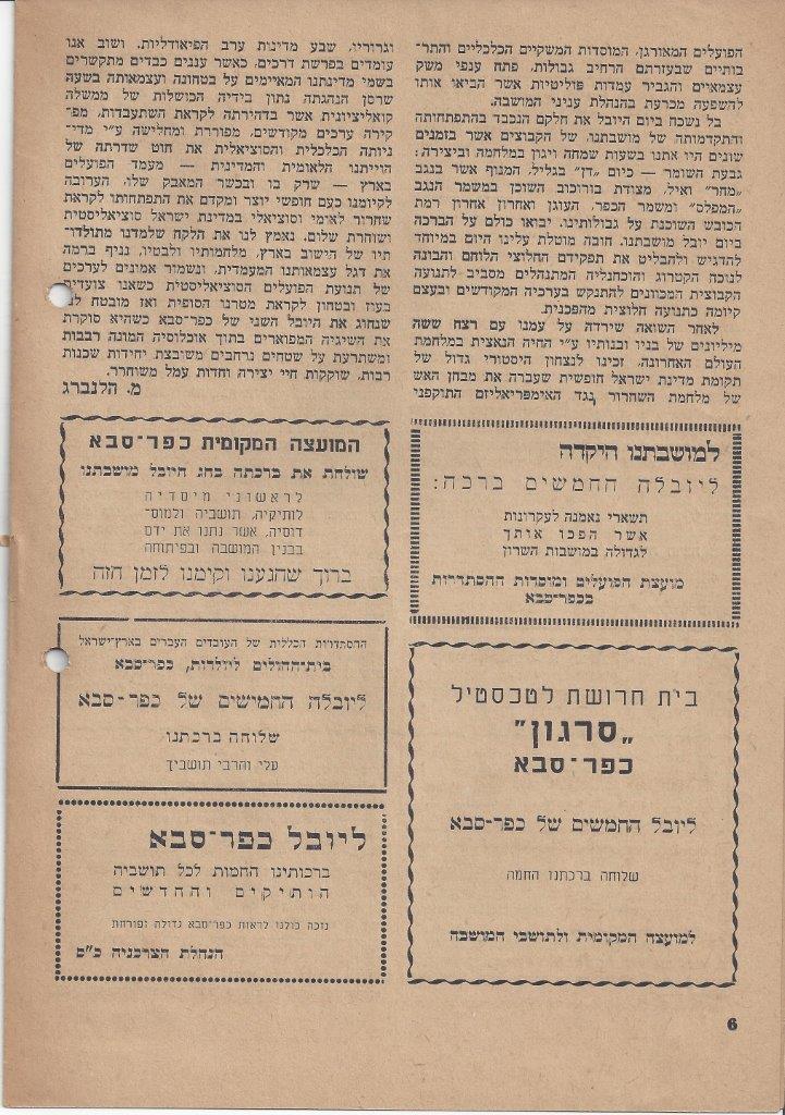 הדי כפר-סבא: עלון מפלגת הפועלים המאוחדת (פנימי) מס. 3, מאי 1953