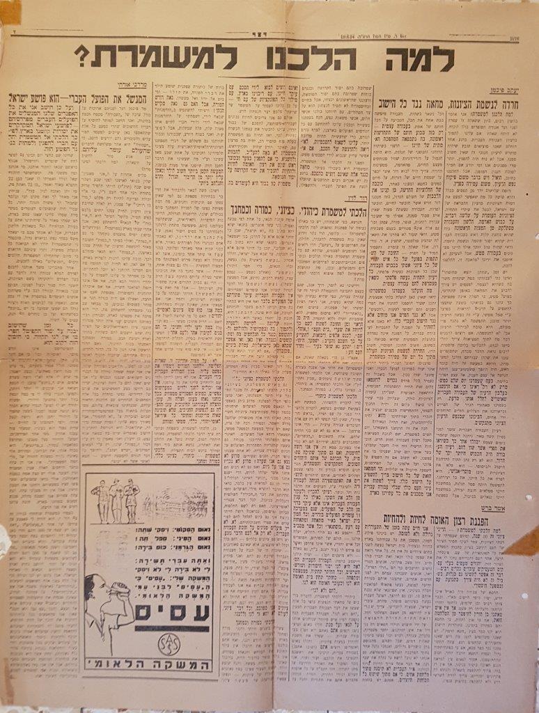 במאי 1964 שלמה אנגל כתב מאמר לעתון ''דבר'' בכותרת "למה הלכנו למשמרת?" אותו כותרת היסטורי שהופע 30 שנה קודם על "המשמרת" ב-1934. למה? אולי המחנך בתוכו להגיד לדור הבא, שלא היה במשמרת "שלא ידע יוסף". אולי ההיסטוריון בתוכו, להסביר למה ועבודה עברית והמשמרת היו כל כך חשוב לישוב ב-1934. אולי קצת נוסטלגיה לזכר, להזכיר, ולהצדיע לגיבורים שלו שהיו גם החברים שחלק מהם הלכו כבר לעולמם.
