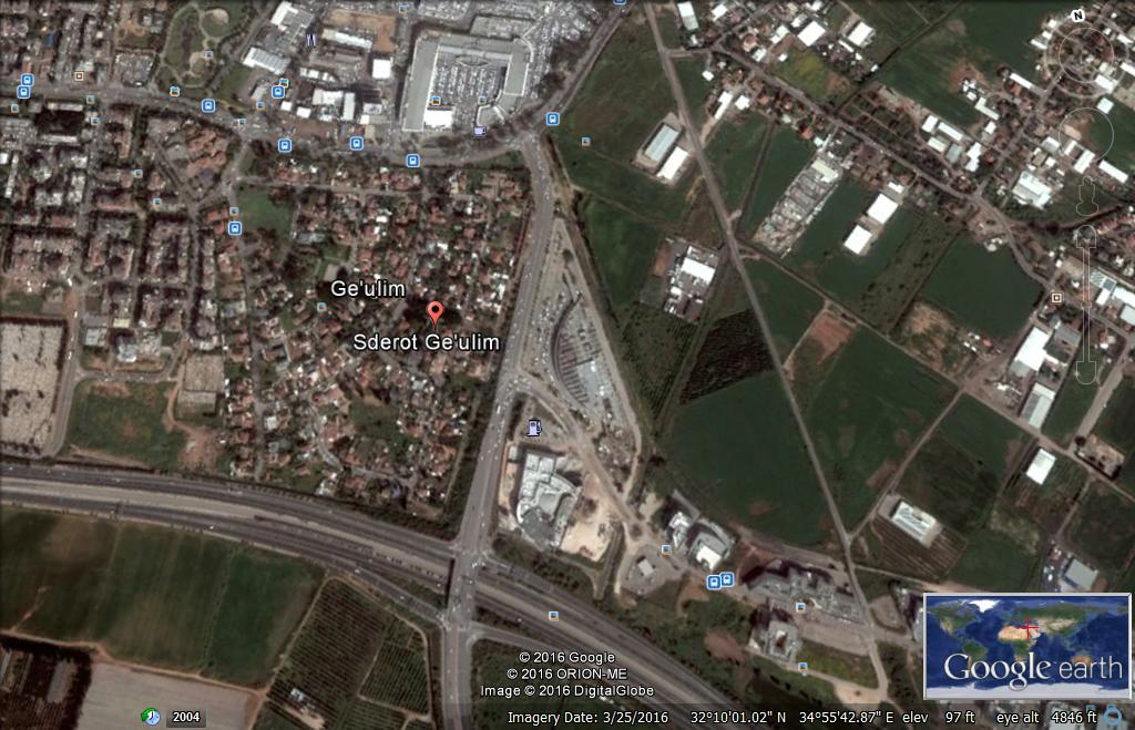 תמונת Google Map 2016 של כפר סבא הכוללת את האזור שבו יכין היה ממוקם בשנות ה-1960 -