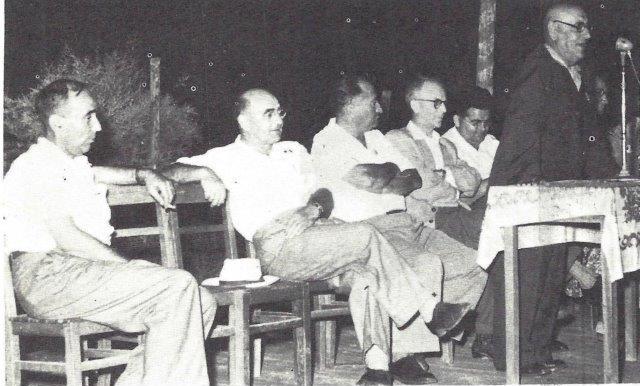 נשיאות העצרת : א. אהרוני (נואם), א. ירון, מ. אבי-שאול, מ. סורקיס, ש. אנגל ומ. רכבי.